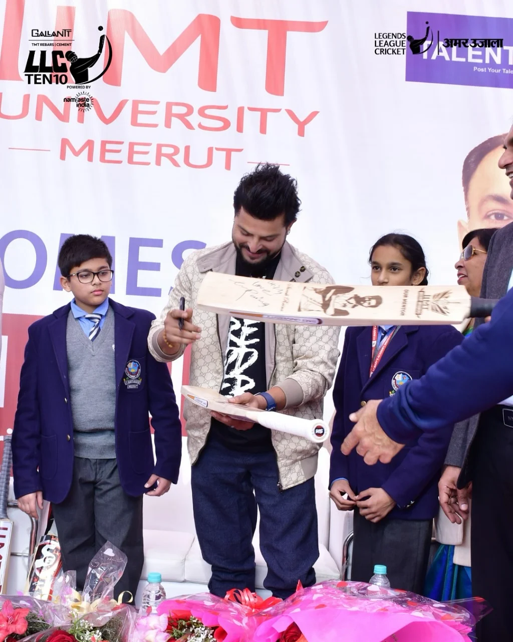 Seize the opportunity to meet Indian cricket star Suresh Raina, mentor of the IIMT Invaders team, as he supports young talent in Meerut's cricket community.