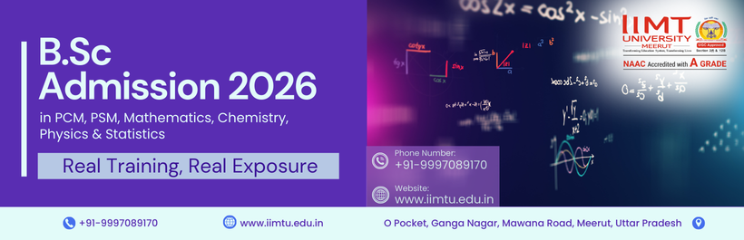 The Bachelor of Science (B.Sc.) program at IIMT University is a cornerstone of scientific education, offering students a strong academic foundation in core science disciplines. B.Sc. Admission 2026 in combinations such as PCM (Physics, Chemistry, Mathematics), PSM (Physics, Statistics, Mathematics), and specialized majors in Mathematics, Chemistry, Physics, and Statistics is ideal for students who aspire to build analytical thinking, problem-solving skills, and scientific expertise.