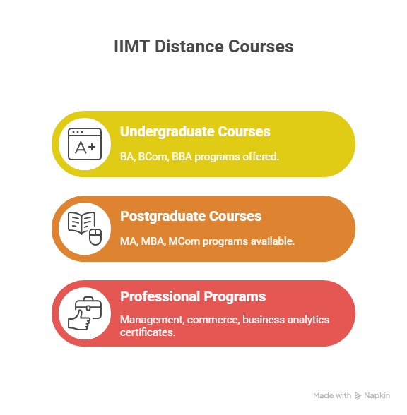 While IIMT University’s public site does not always list every course in distance mode, some commonly available offerings and indicative program types include: